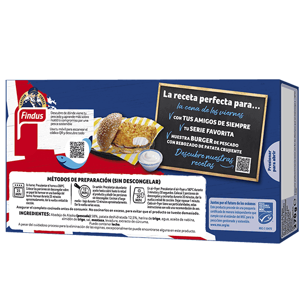 ¿Eres un apasionado de las hamburguesas? Entonces esta es tu oportunidad. Con la nueva hamburguesa de pescado de Findus podrás darle un nuevo giro a tu receta de burger. Añade nuevos toppings que combien a la perfección con una burger de pescado como esta y sorprende a todos tus invitados. Si se te ha acabado la imaginación y ya no sabes cómo innovar con tus burgers, esta hamburguesa de filete de pescado es tu opción ideal. ¡A qué esperas para probarla!