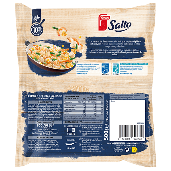 Con marisco de origen responsable y huevos de gallinas criadas en el suelo, sin aromas artificiales ni potenciadores del sabor.
